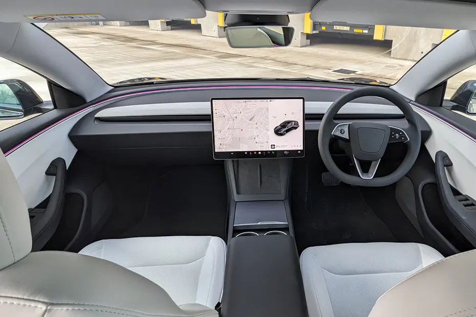 The minimalist interior divides opinion — there are almost no physical buttons, with everything controlled through the 15" touchscreen. You either love or hate this approach.